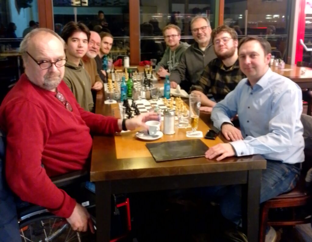 Wir freuen uns, Euch nochmal auf dem ein oder anderen Turnier zu begegnen und schöne Partien mit Euch zu spielen. Von Links nach Rechts: Stephan, Luca, Bernd, Pascal, Adrian, Uwe, Timon, Benjamin.